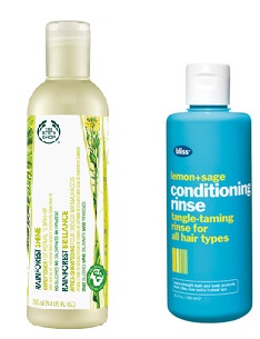 L’après-shampooing démêlant de Bliss de la gamme Citron Sauge est déjà bien plus sympa à utiliser : il a une très bonne odeur de citron et sort bien du flacon quand on presse celui-ci.