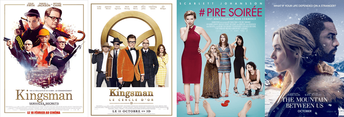 On commence avec quatre films vus plus ou moins récemment : Kingsman 1 et 2, # Pire Soirée et La Montagne entre nous.
