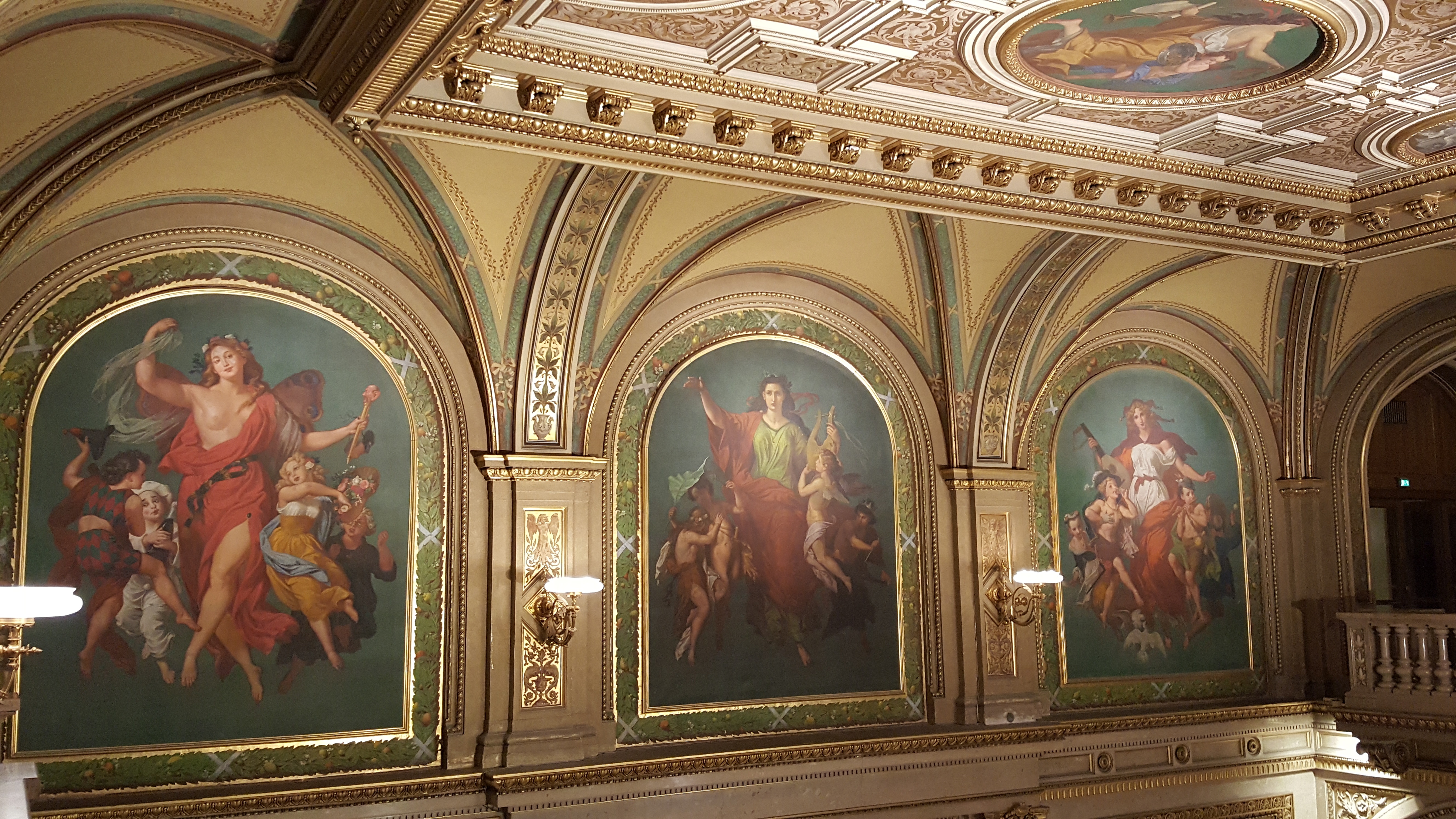 L’opéra est très beau du dehors… mais son intérieur est à couper le souffle. On y a vu La Bohème (en italien avec sous-titres allemands – disons que j’ai compris l’histoire mais pas les subtilités) et ce fut particulièrement émouvant car c’était ma toute première sortie à l’opéra… ! C’est d’autant plus génial que cela ne coûte que 3 euros, si on accepte de faire la queue quelques heures avant la représentation et de rester debout pendant toute la représentation (il est possible de s’asseoir par terre, mais on ne voit rien, alors). A l’entracte, la file d’attente est jouable pour boire un verre de vin blanc viennois à prix doux (3,50 euros).