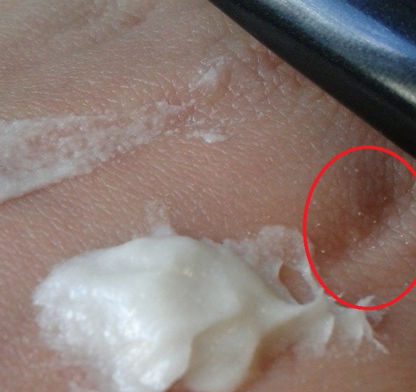 A noter que ce produit est très abrasif. Utilisé sur une peau résistante comme la mienne, pas de soucis (ma peau ne rougit même pas), mais gardez vos distances si votre peau est sensible.