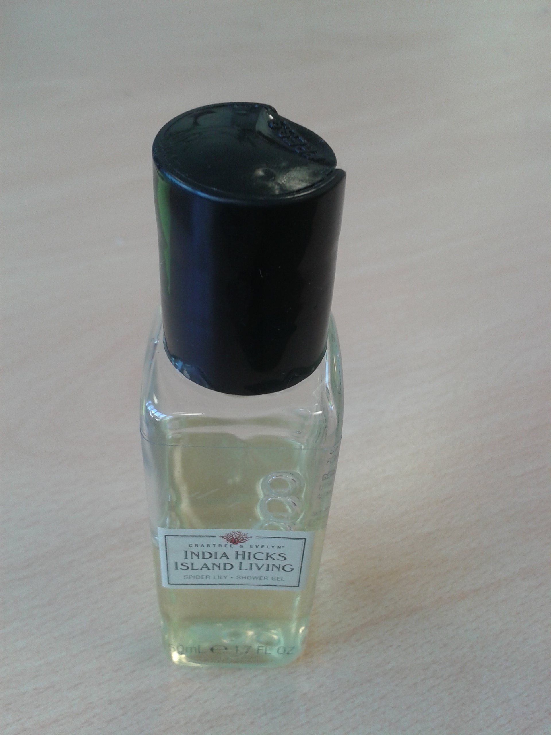 En fait, ma miniature est dans un flacon en plastique super-rigide qui libère très peu de produit lorsqu’on la presse, même avec les deux mains. C’est tellement une plaie de l’utiliser que, en dix jours de voyage, à Londres et à Birmingham, je n’ai utilisé que 45% du volume de ma miniature, soit 2,25mL par douche. Cela semble très peu, surtout comparé aux capsules monodoses de Sephora qui font 8mL ! Bref, ce format est plutôt rentable comparé au flacon-pompe du “vrai” produit… mais est-ce que cela lave aussi bien ? Franchement, j’en doute, même si je n’étais pas vraiment sale avec cette mini-dose de gel douche (et je n’avais même pas de fleur de douche pour l’appliquer plus facilement, j’étais en voyage ! ).
