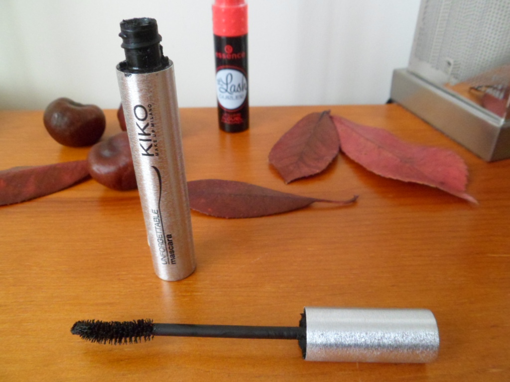 kiko unforgettableOn commence avec le mascara Unforgettable de Kiko. Il coûte 7,20 euros à la base, ce qui est bon marché donc – mais on le trouve régulièrement en promotion (comme en ce moment : 3,90 euros les 8mL) : moins cher, ce serait donné ! Il est dispo en noir, waterproof ou non. J’ai testé le non-waterproof.
