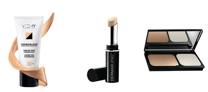 Vichy Dermablend apporte une solution au quotidien pour ces trois soucis de peau : un fond de teint correcteur hyper-couvrant, et à l’effet naturel, disponible en fluide et en compact. Grâce à lui et à son stick correcteur, on peut sortir la tête haute, sans avoir peur que les gens nous dévisagent…