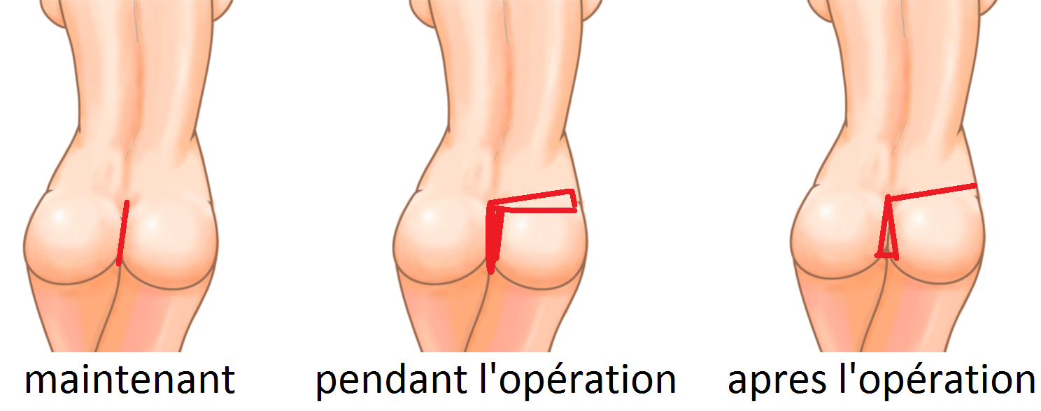 Cette fois-ci encore, je suis tombée sur un chirurgien qui referme la plaie. Mais pas comme d’habitude. Il fait une sorte d’auto-greffe de peau, relocalisant un morceau du haut de la fesse dans le pli inter-fessier. Il m’a montré quelques photos des derniers patients qu’il a opéré de la sorte et j’en conclue que j’échange donc une cicatrise de 8cm de long contre une de 30cm de long. Une cicatrice qui, si elle venait à s’ouvrir, serait franchement handicapante. Vous comprenez pourquoi je n’étais pas super chaude…