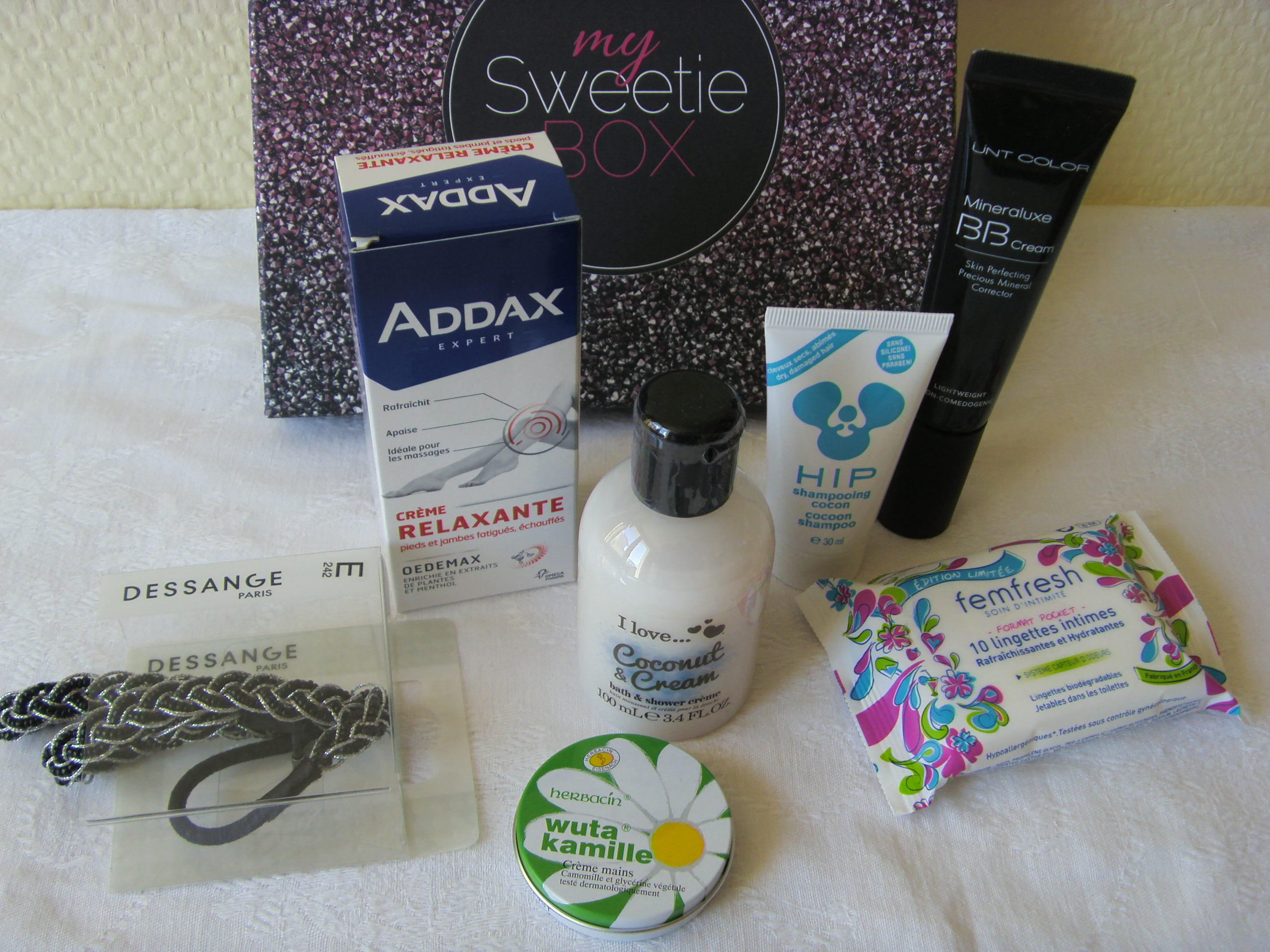 On trouve donc un headband Dessange dans la box. Pourquoi pas, il est brillant, donc ca va avec la box, mais j’ai déjà un headband il y a quelques mois et Dessange était déjà présent le mois dernier dans My Sweetie Box – la surprise et la nouveauté ne sont pas au RDV… (valeur : 2-3 euros ?)