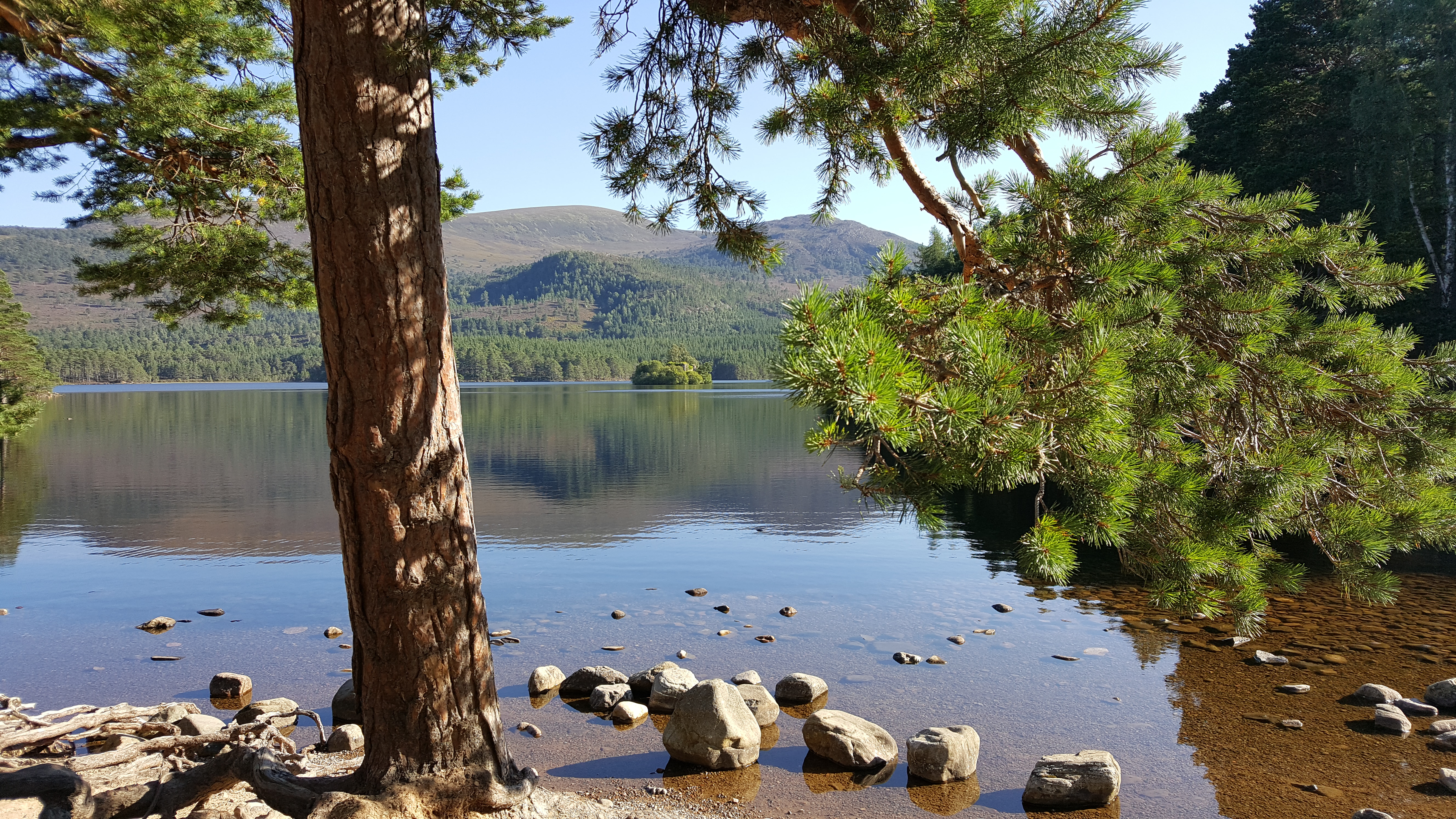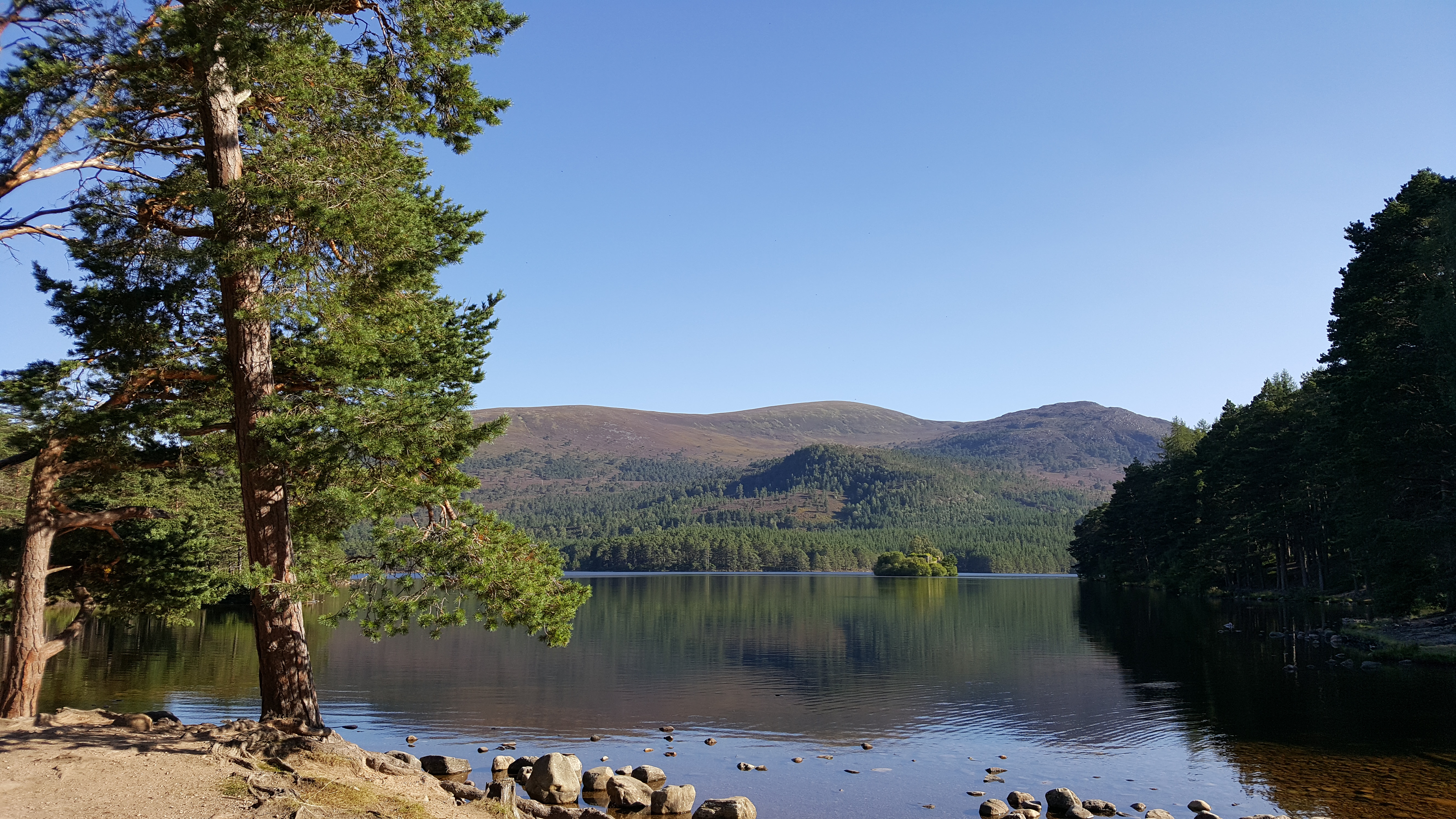 Et que dire de mon paysage de carte postale préféré, notre arrêt bien mérité au Loch an Eilean, dans la forêt de Rothiemurchus ? Certainement le plus beau loch que l’on ait vu de tout notre séjour… J’avais découvert l’existence de ce bijou sur le net, et cette vue a dépassé mes espérances. On se croirait au paradis ! Vous ne m’en voudrez pas que j’insère plein de photos – non retouchées !