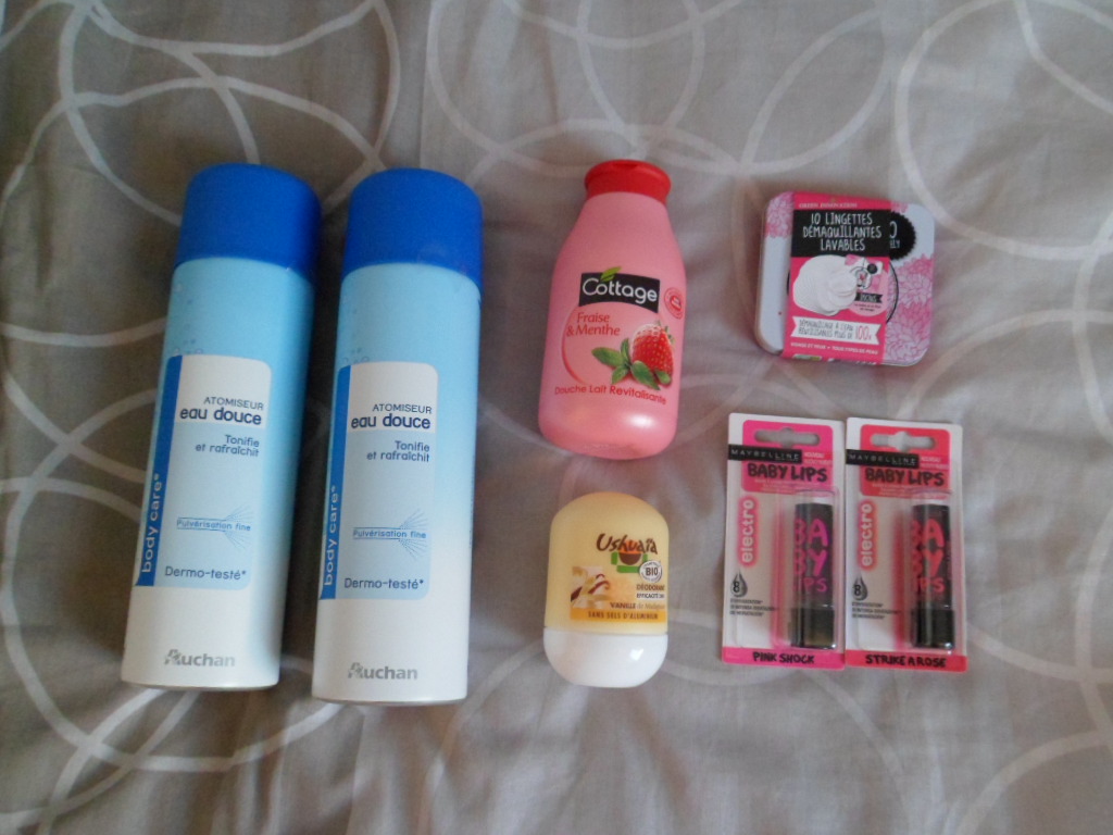 Avant cela, j’étais allée dans mon petit Casino pour y acheter un déodorant Ushuaia bio à la vanille et j’y avais déniché aussi deux Baby Lips Electro ! Ainsi que des nouveaux cotons démaquillants lavables à tester…