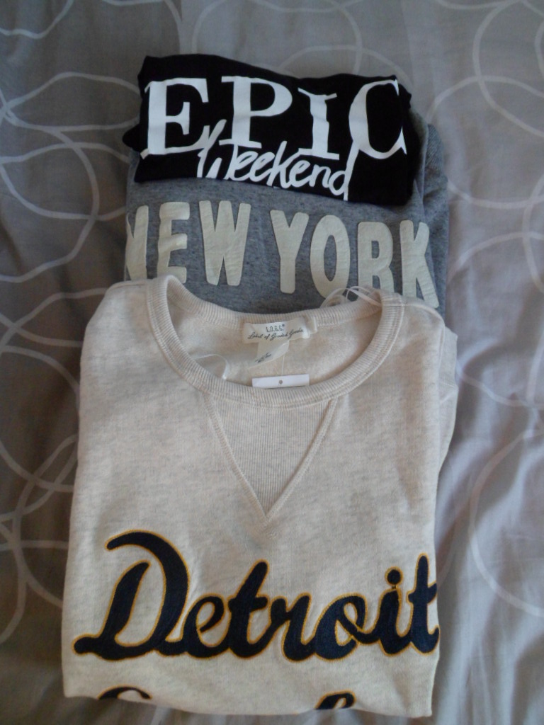 Et parce que je suis en mode rentrée, c’est chez H&M que j’ai craqué mon slip avec mon obsession preppy du moment : deux sweats confortables à inscription “ville américaine” (et encore, j’ai failli tout prendre ! ). Et un t-shirt Epic Week-End pour trainer chez moi.