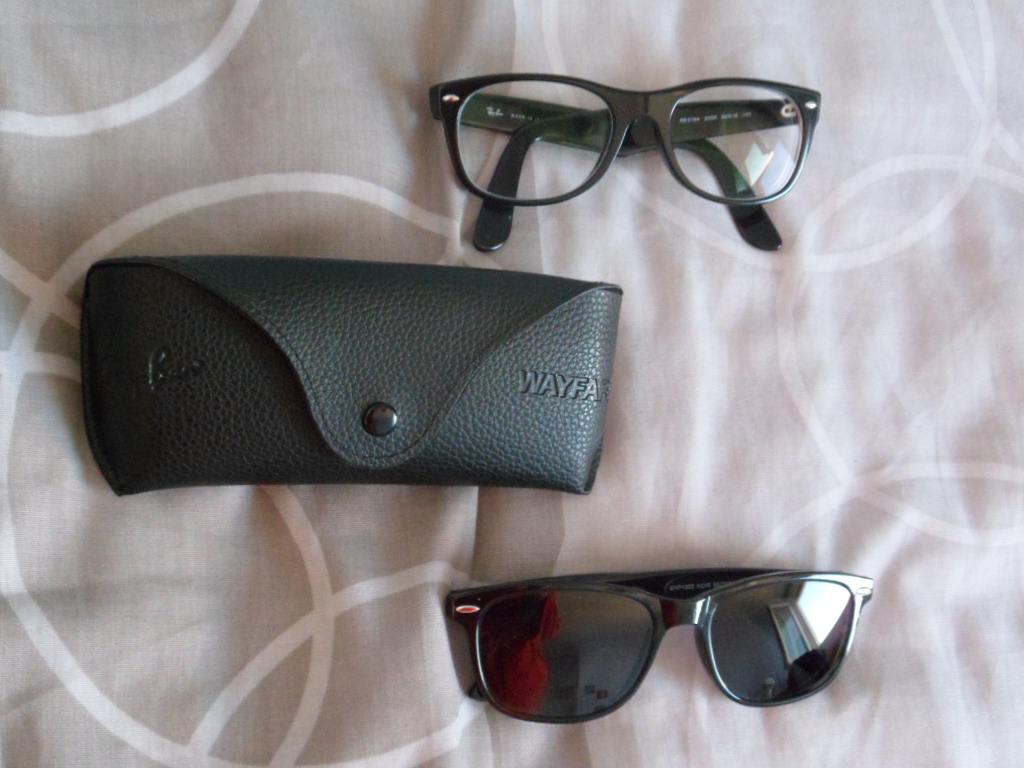 Et, enfin, pour lire tout cela sans m’abimer mes yeux, je vous présente mes nouvelles lunettes de vue et de soleil. J’ai pris une paire de RayBan Wayfarer noires toutes simples en vue et leur copie pour un euro de plus en version solaire !