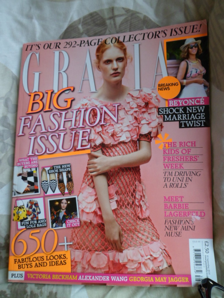Et lors de mon périple dans le North Devon (voir mes incroyables aventures sur Bye Bye Toulouse !!! ), j’ai acheté le Grazia de la semaine, car c’était l’édition spéciale mode.