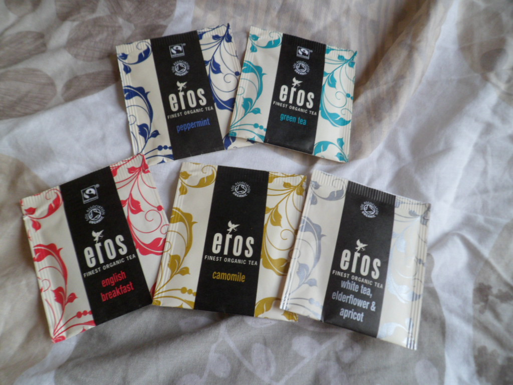 Petite parenthese thé avec cinq sachets de la marque Eros que j’ai “piqués” au boulot, où il y avait une pause café d’organisée !