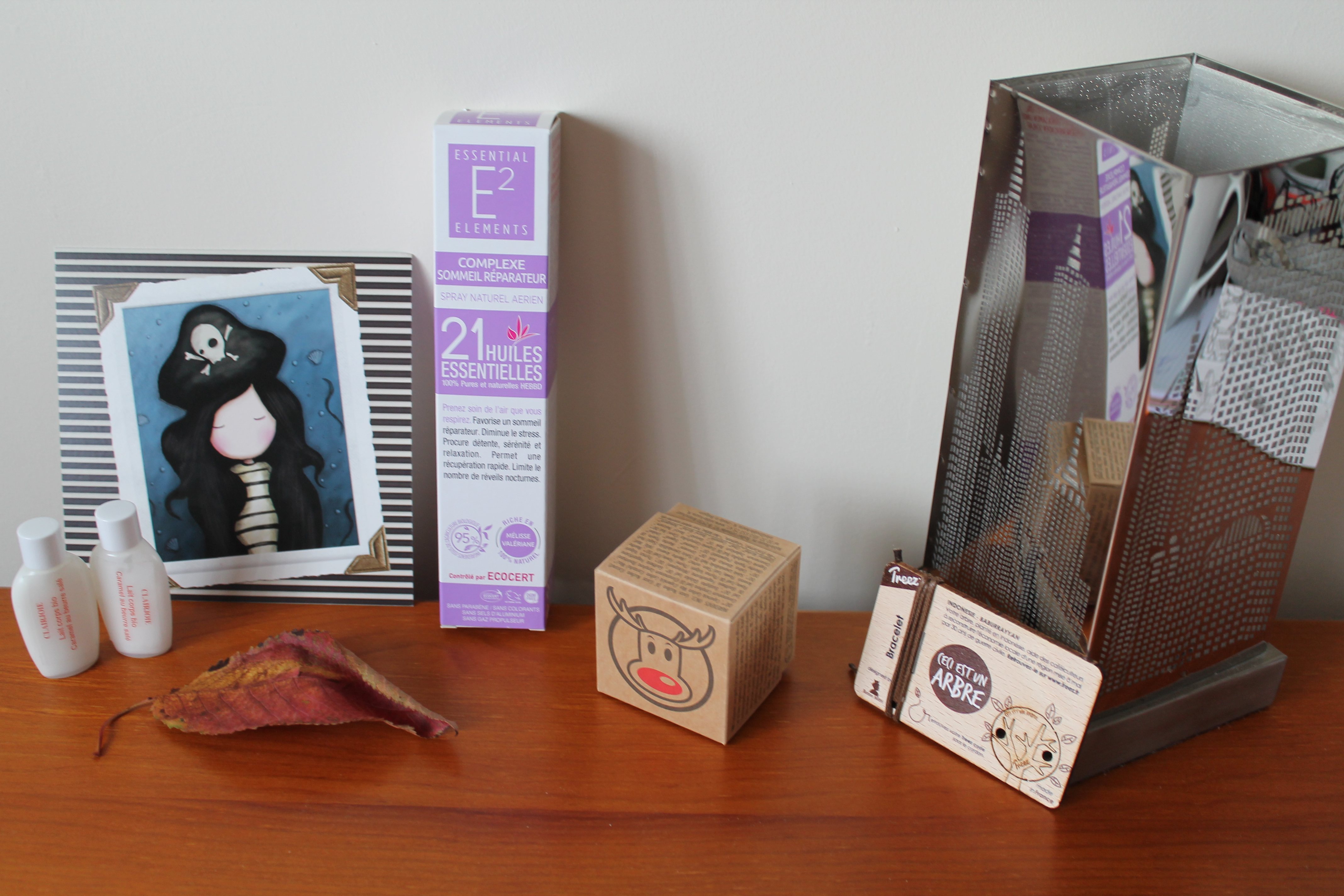 Claire a bien compris que je souhaitais m’adapter à l’automne, elle me permet de tester le baume bio Rudolf de Aman Prana (pour mieux respirer), le complexe sommeil réparateur bio aux 21 huiles essentielles de Essential Elements (E2) (pour mieux dormir) et le lait corps Clairjoie au caramel au beurre salé (parce que c’est une odeur que j’adore ! ). En plus, je vais pouvoir afficher mon coté écolo à mon poignet avec ce bracelet Treez : pour chaque bracelet, un arbre est planté. Le mien est en Indonésie. Un grand merci !