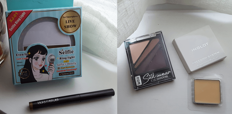 Enfin, de retour à Exeter, j’ai découvert (en plus d’un nouveau câble USB pour mon Samsung Galaxy S6), cette lampe à selfie que je m’étais commandée sur Amazon, ce fard à paupières en stick de Laura Mercier acheté avec mes derniers points Birchbox, et deux petits cadeaux d’une copine : cette mini-palette Wibo et un parfum solide Inglot.