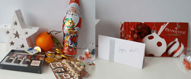 Sur la photo, il y a aussi le cadeau de la 25ème case de mon calendrier de l’Avent : acheté en septembre alors que je pensais toujours ne pas me faire réopérer en avril et finir ma thèse d’ici fin février, c’est un organisateur de voyage… Ce sera finalement pour 2018, snif…