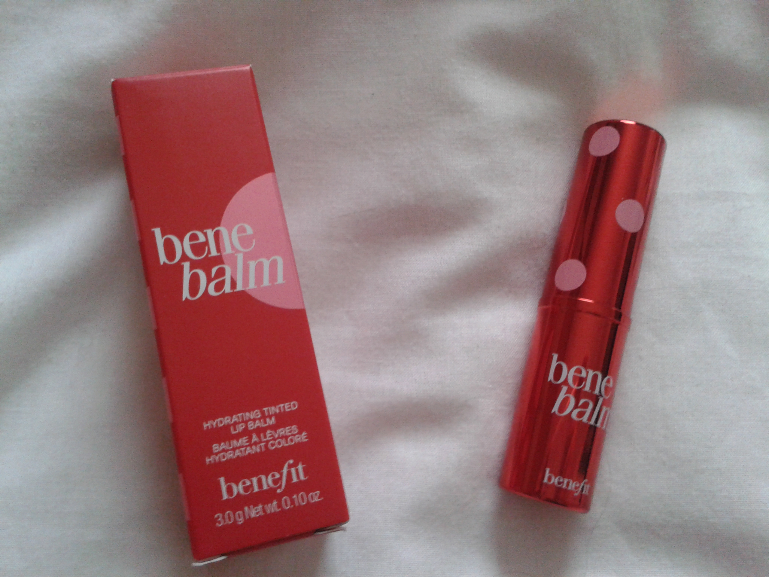Enfin, pendant mon absence, au bureau, j’ai reçu plusieurs Birchbox-es UK (je vous ferai une vidéo Youtube pour vous présenter brièvement leur contenu). Et, avec mes points Birchbox, je m’étais offert en automne ce baume teinté Benebalm de Benefit. Vous savez combien j’ame les baumes teintés…