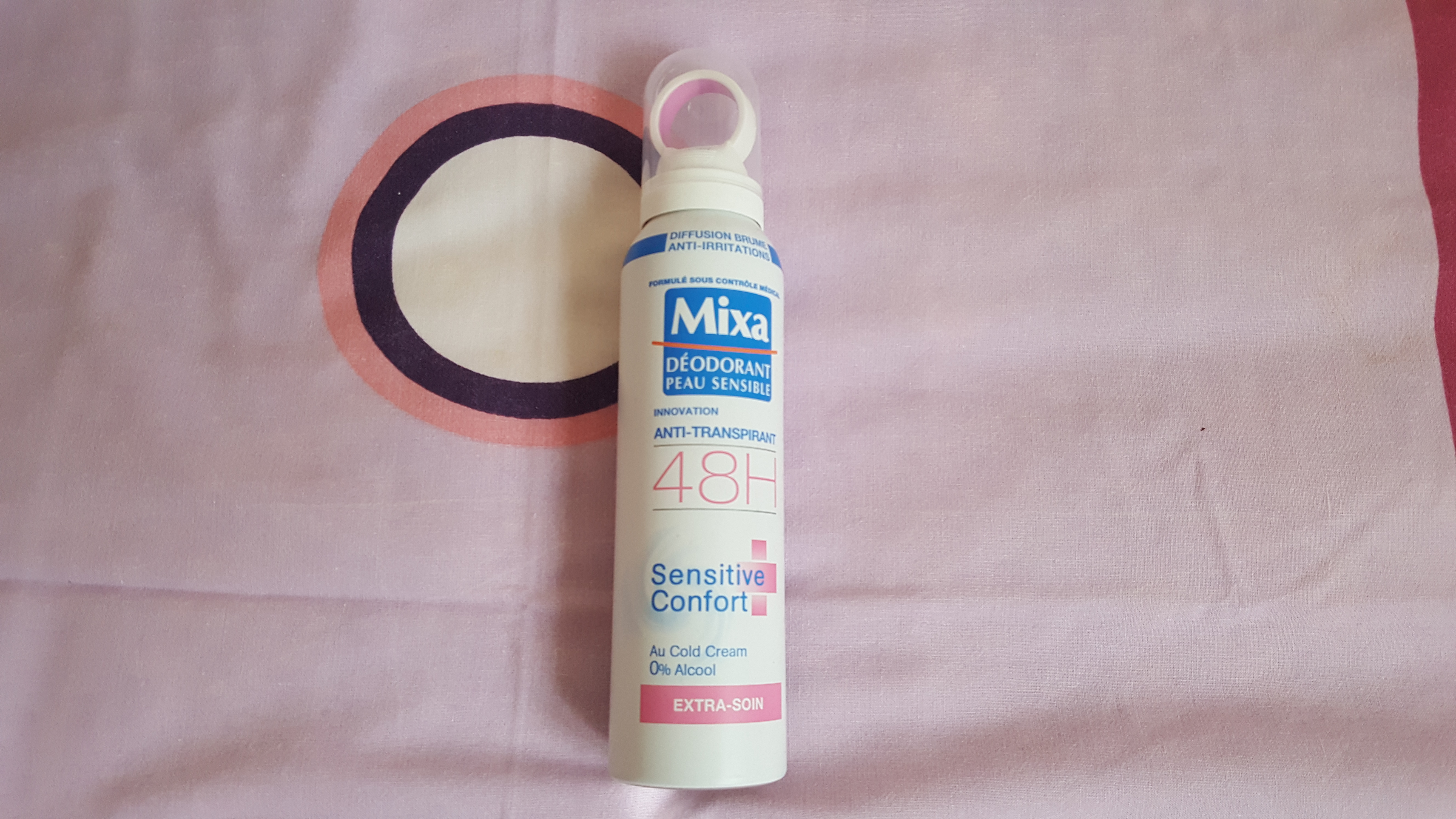auchanA Auchan, j’ai shoppé un nouveau déodorant, car je n’en avais plus (ma restriction budgétaire me force a finir mes stocks, c’est un fait ! ). J’ai craqué pour le nouveau déo de Mixa, qui était en plus en promo. J’en ai profité pour acheter des lingettes nettoyantes pour ma très future hospitalisation (qui commence jeudi après-midi…).