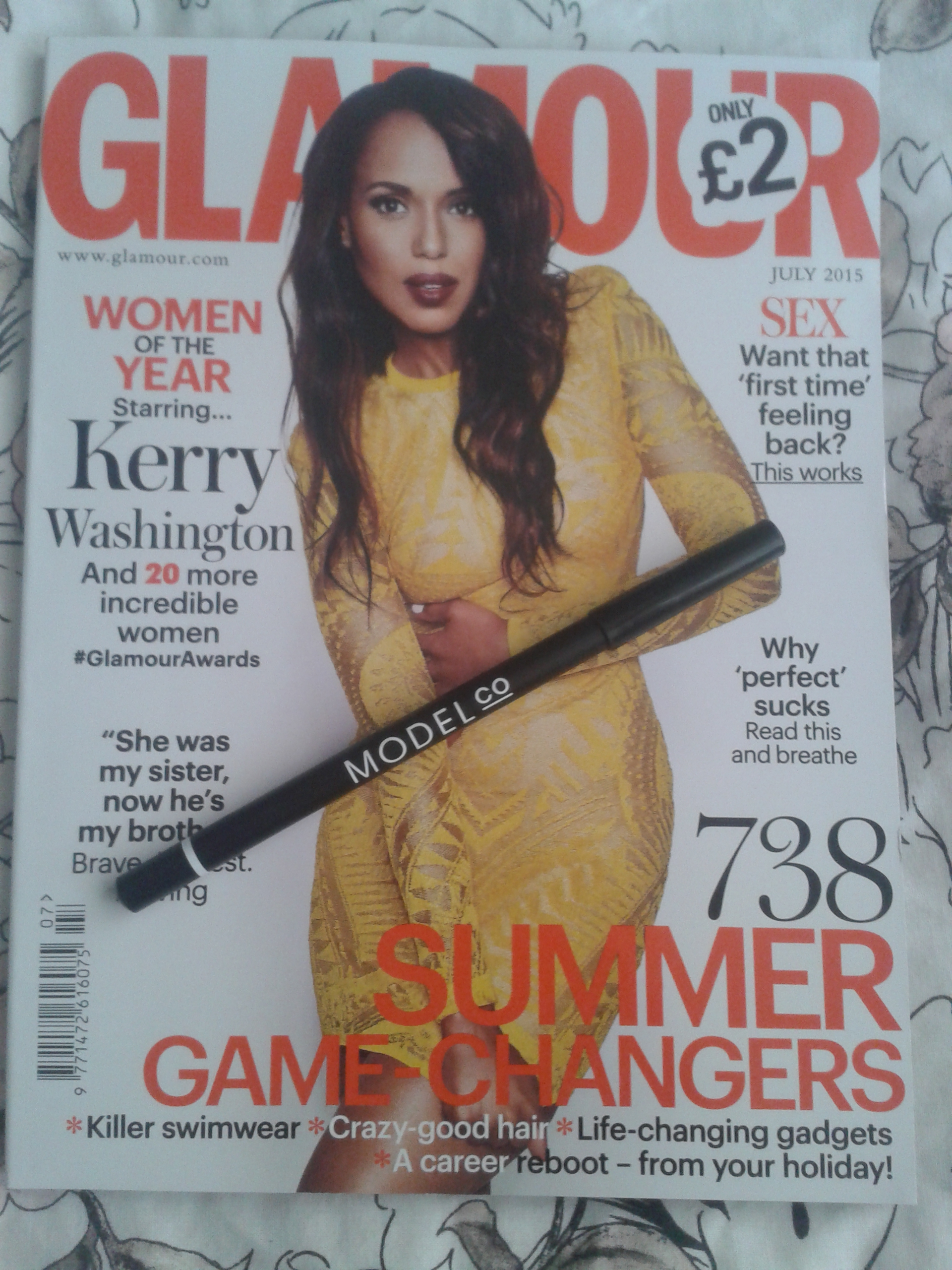 Enfin, dans ma boite aux lettres, j’ai trouvé mon Glamour mensuel, avec ce crayon noir full-size de ModelCo. Le magazine est vendu 2 pounds, le crayon 12. Il est très possible que j’achète aussi le magazine en kiosque, avec cette fois-ci l’eyeliner bleu ModelCo…