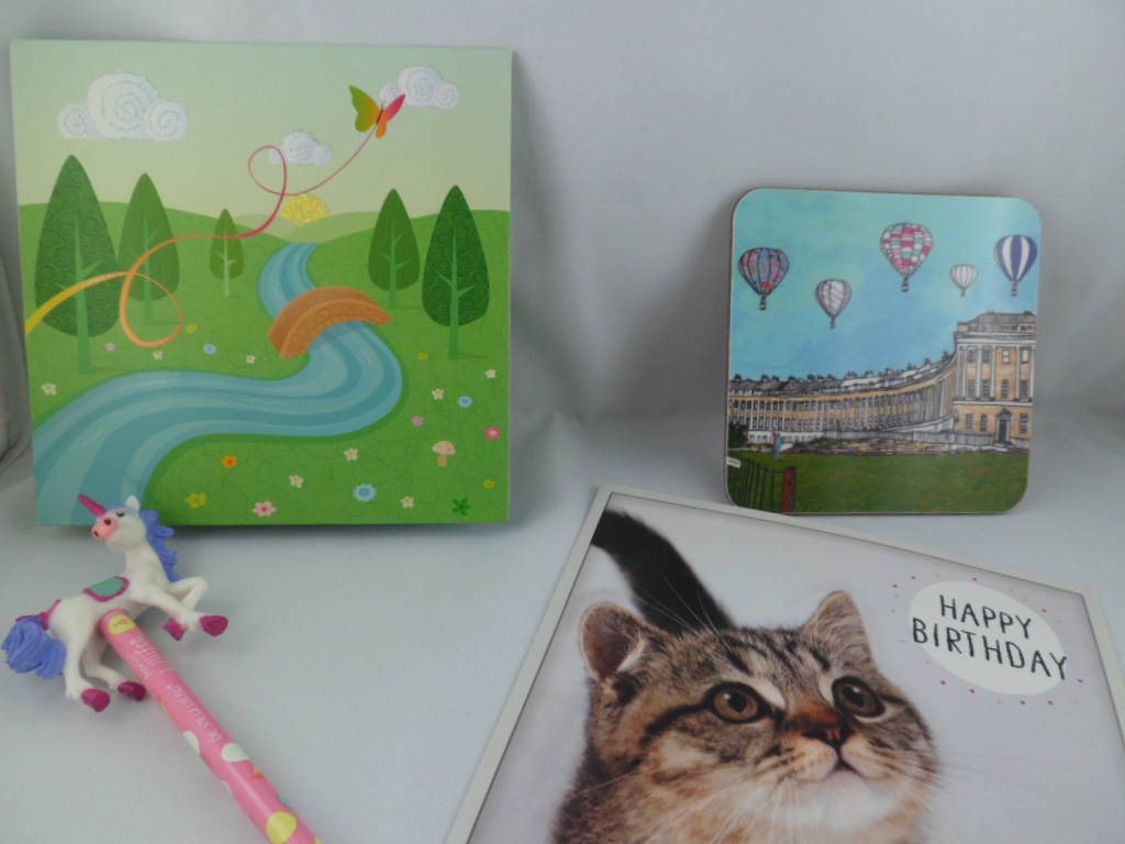 Enfin, cette semaine, c’était mon anniversaire. J’ai reçu deux cartes trop mignonnes : une avec une licorne et une autre avec un chat. De la part de mon amie S, j’ai eu le crayon licorne assorti. Et, de la part de ma maman, j’ai eu un dessous de verre que j’ai choisi lors de notre périple à Bath (c’est le Royal Crescent de Bath qui est illustré).