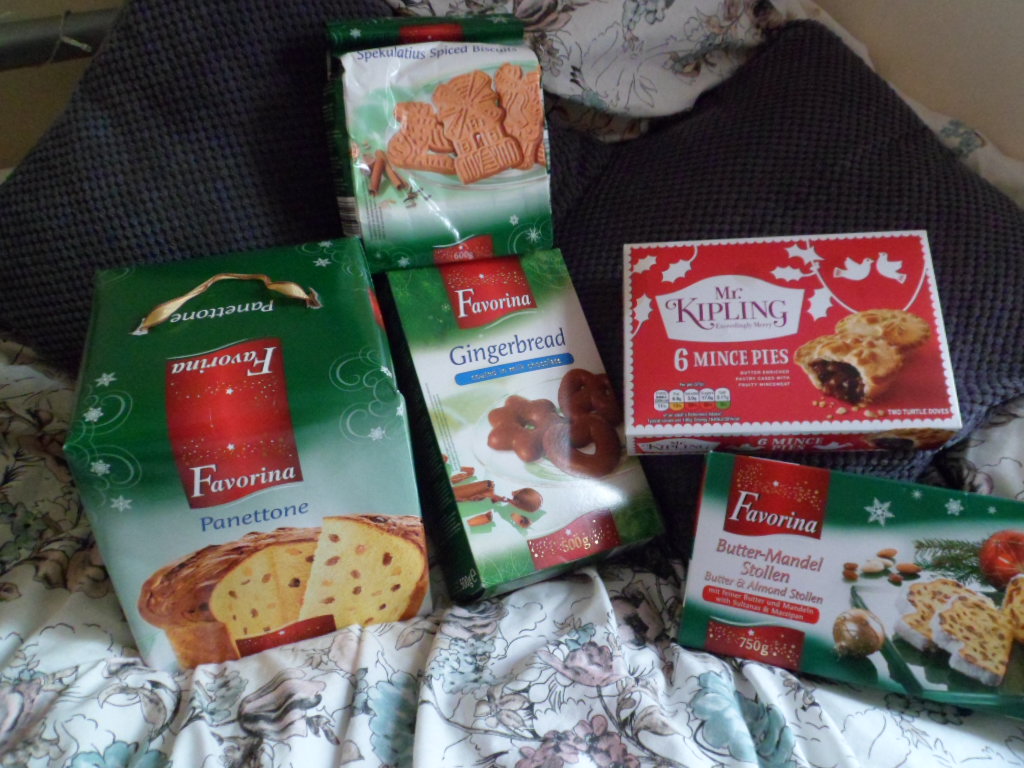 Niveau gourmandises, je ne me suis pas fait prier pour vider Lidl ! A moi le Pannetone, les stollens allemands, les gingerbreads… ainsi que les speculoos ! J’ai aussi pris des Mince pies, cette spécialité 100% anglaise. (Mon haul Lidl est incomplet, j’ai acheté des dizaines de choses, j’ai un peu honte de tout vous montrer… Gourmande, je suis et je resterai ! )