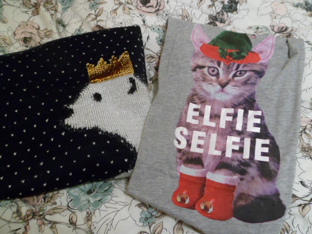 Et, à New Look, j’ai acheté le pull qui me faisait envie, ainsi que ce géniallissime t-shirt chat-elfe !