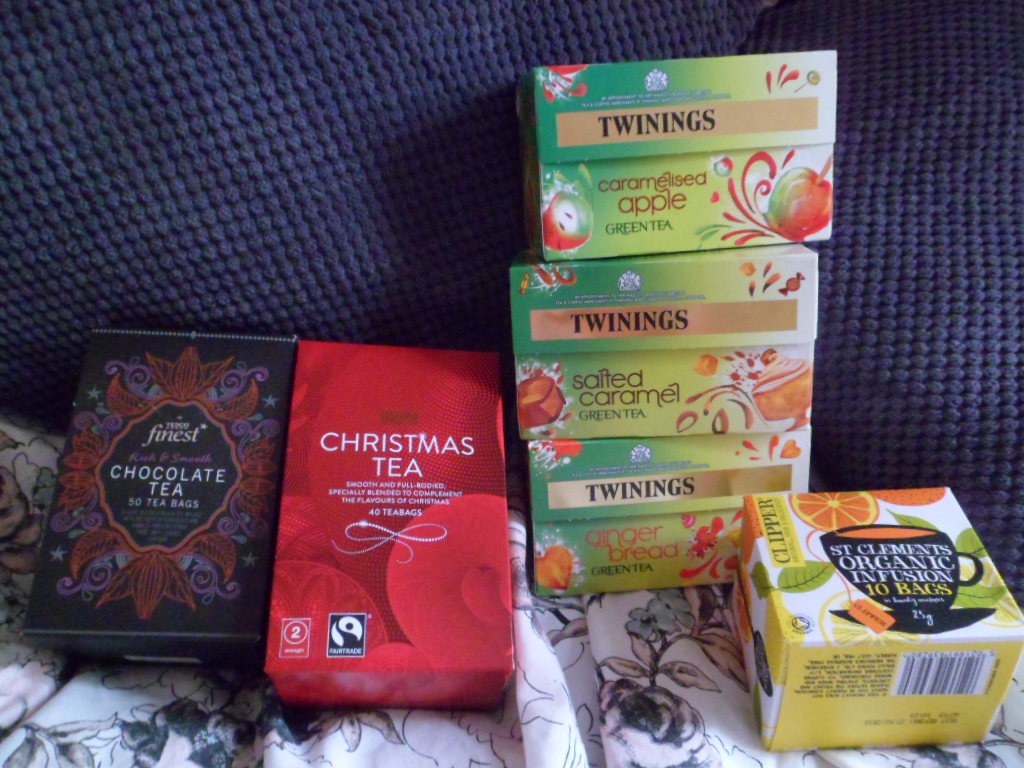 Pour faire passer tout cela, rien de mieux qu’une bonne tasse de thé ! J’ai découvert un thé au chocolat de chez Tesco, un thé de Noël de chez Marks & Spencer… et j’ai aussi pris trois Twinings gourmands : Gingerbread, Caramel salé et Pomme Caramélisée. Un peu plus rafraîchissant, l’infusion bio St Clements à l’orange de Clipper.