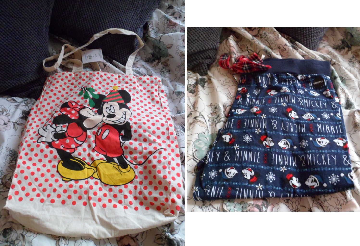 J’ai cru inutile de résister face aux vêtements de Noël. J’ai donc acheté un tote bag Disney à Primark, avec un bas de pyjama dans le même genre.