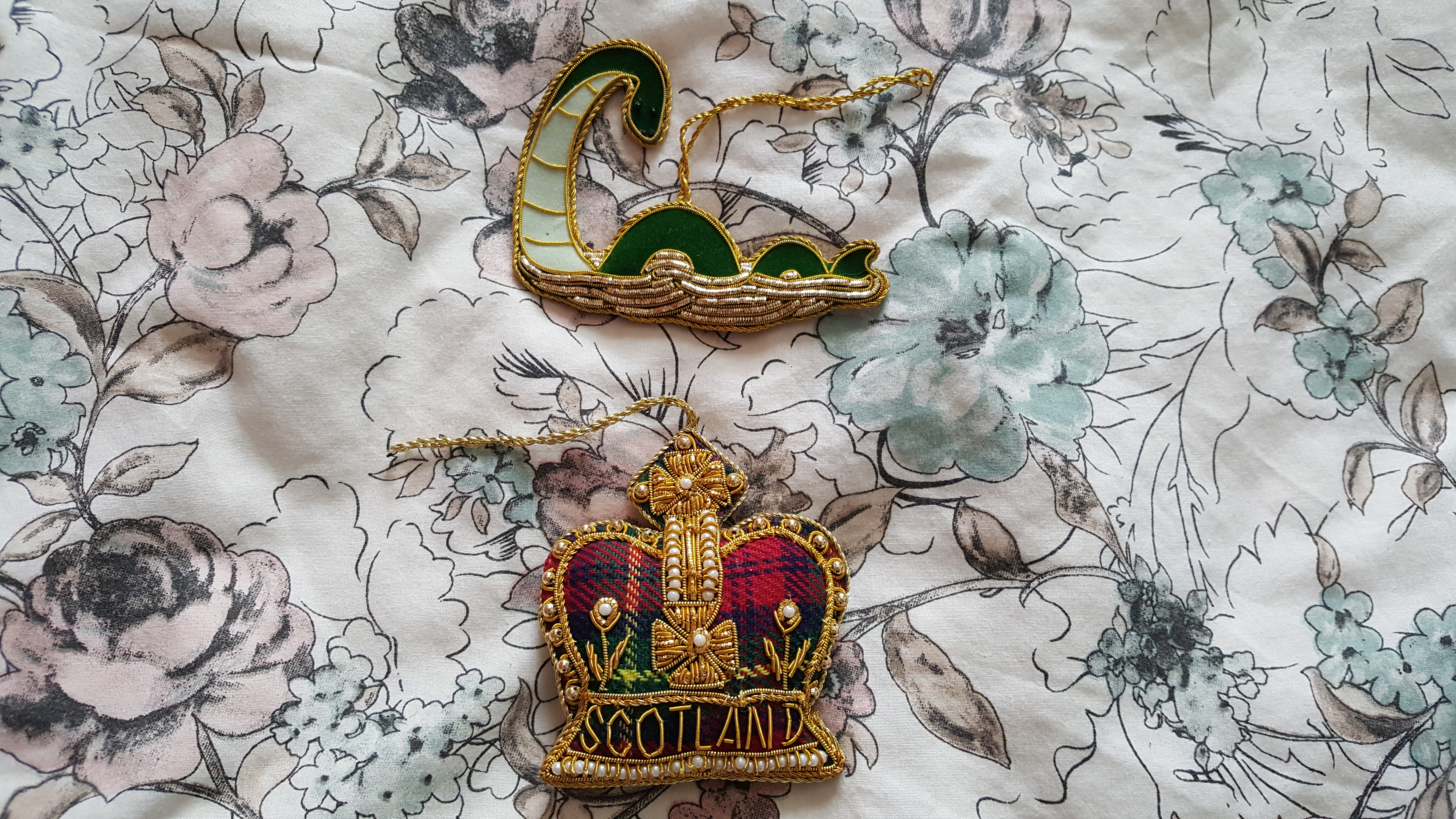 Et sinon, en Ecosse, j’ai reçu en cadeau ce joli monstre du Loch Ness en décoration de Noël et je me suis offert cette jolie couronne en tartan… toujours sur le thème des déco de Noël. On ne se refait pas !