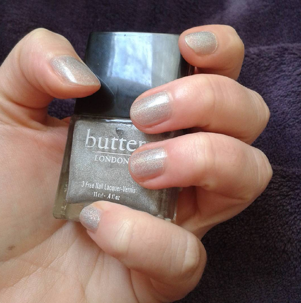 vernis argenté butter londonDodgy Barnett de Butter London était mon tout premier vernis de la marque et, malgré un prix prohibitif (heureusement, je l’ai trouvé soldé chez TKMaxx), ce ne sera pas le dernier car j’ai halluciné devant la qualité de ce vernis !