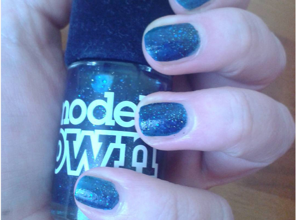 vernis bleu models ownValerian est un vernis de la collection Velvet Goth de Models Own. Je l’ai acheté au printemps après avoir craqué, l’an dernier, sur la version vert “absinthe” de la marque. J’adore l’originalité de son rendu : c’est pailleté, ça brille… mais cela a un côté mat en même temps !