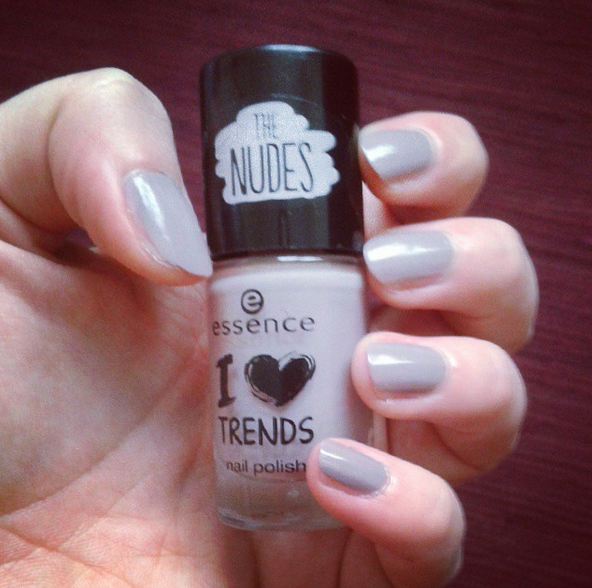 Un autre vernis qui m’a surprise, c’est le Crunchy Cake de la collection The Nudes de Essence. En magasin, il avait l’air d’un nude “marron glacé” basique, mais, à la lumière naturelle, on y distingue des micro-paillettes violettes (invisibles sur les ongles). En fait, une fois posé sur les ongles, c’est plus un vernis gris violacé que nude ! Cela reste de saison.