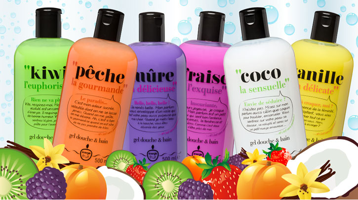 Je vous le disais récemment : j’ai besoin de fun dans la salle de bain, le moment de la douche venu ! Lasse des (trop rares) gels douches disponibles en Angleterre, je fais les yeux doux à Energie Fruit, une gamme acidulée, abordable comme je les aime. A kiwi, peche, vanille, coco et fraise viennent s’ajouter menthe, fruits de la passion et caramel. Courrez vite dans vos Carrefour et autres Casino !