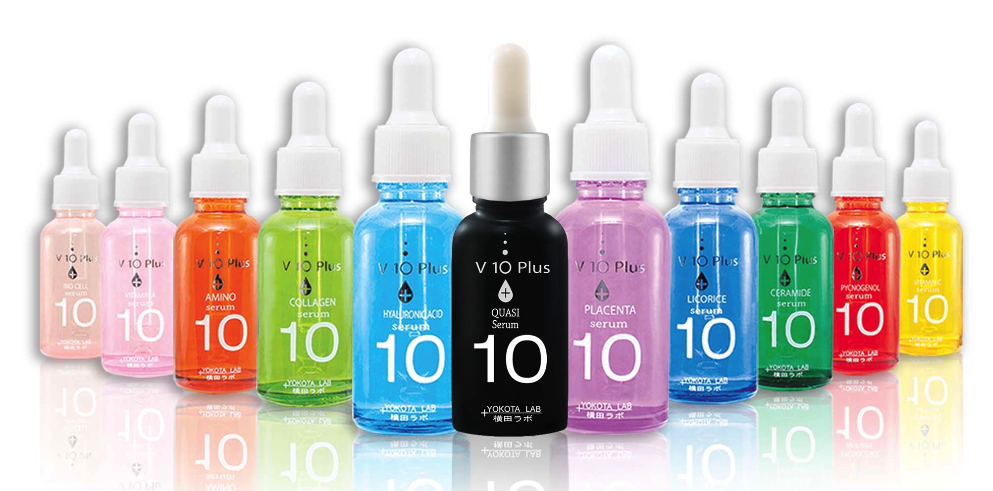 On reste dans le domaine du coloré avec les sérums V10Plus, tout droit venus du Japon. On ne le dira jamais assez, les sérums, en Asie, c’est le must des soins visage, c’est vers eux que l’on se tourne pour réguler sa peau. V10Plus nous propose un grand choix de vertus à sélectionner selon nos besoins : contour de l’oeil fatigué, peau sèche, surproduction de sébum, manque d’éclat… Il n’y a plus qu’à choisir celui qu’il nous faut !